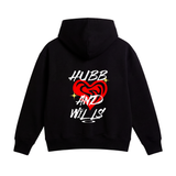 This hoodie combines high-contrast streetwear aesthetics with a deep message of healing. The distorted heart graphic symbolizes emotional turbulence, while the 'Hubb & Wills' branding stands as the resolution.