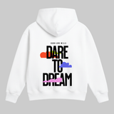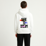 Designed for everyday moments, this unisex hoodie balances clean structure with a quietly powerful message. Crafted from heavyweight cotton-blend fleece for a high-quality feel, it’s lined with soft brushed backing for warmth and comfort. The relaxed silhouette creates an easy, effortless shape, while the kangaroo pocket keeps the look functional. A bold “Dare To Dream” graphic to the chest adds a subtle reminder to back your vision, day after day.